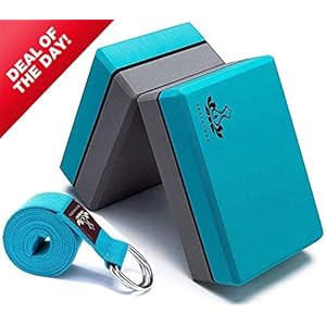 Heathyoga Yoga Blocks 2 Pack with Strap, High Density EVA Foam Yoga Block and Yoga Strap Set to Support and Improve…