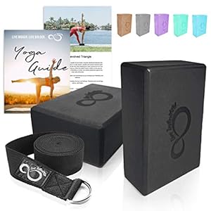 Premium Yoga Blocks & Metal D Ring Strap Yogi Set (3PC) 2 Pack High Density EVA Foam Blocks to Support & Deepen Poses…