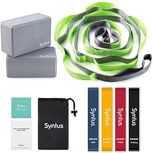 Syntus 9-in-1 Yoga Set, 1 Yoga Strap with 12 Loops, 2 EVA Foam Soft Non-Slip Yoga Blocks 9×6×4 inches,4 Resistance Bands…