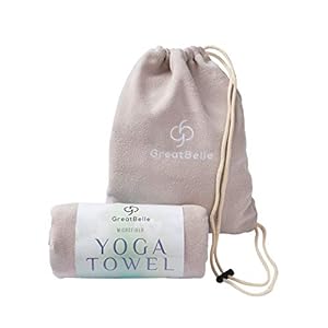 GreatBelle Yoga Towel with Storage Pouch (72” x 26”) Sand Beige – Non-Slip Super Absorbent Microfiber Mat Yoga Towel Use…