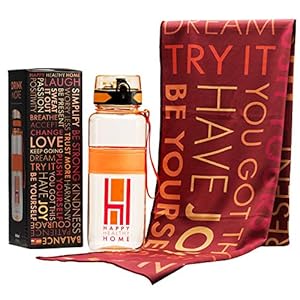 GBBO 3H Workout Water Bottle & Motivational Cooling Towel Set – 32oz Large – Fast Flow Spout w/One Click Flip Top, Leak…
