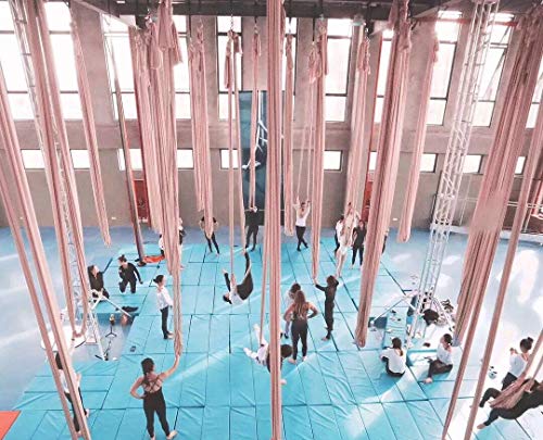 The Aerial Yoga hammock is made of 5 meters of 40-denier Nylon Tricot fabric, which is the same type of fabric used in Cirque du Soleil performances.