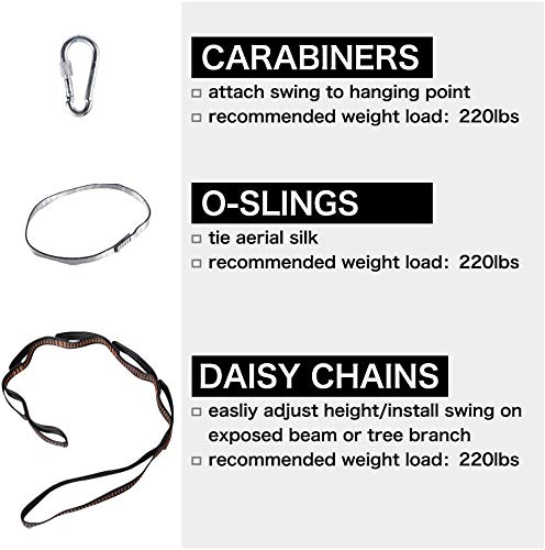 [EASY USE]: No need to purchase extra hardware or figure out complicated pieces. This yoga swing is sent with necessary hardware. The whole swing can be set up within few minutes indoor/outdoor.The daisy chain can adjust the height easily–make hanging simple for kids.(Age: 3~10. Young children should use it under supervision and with help of adults)