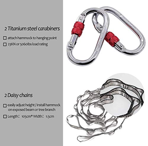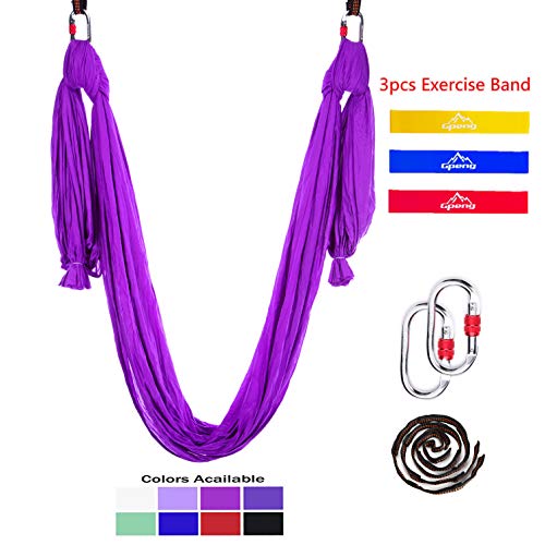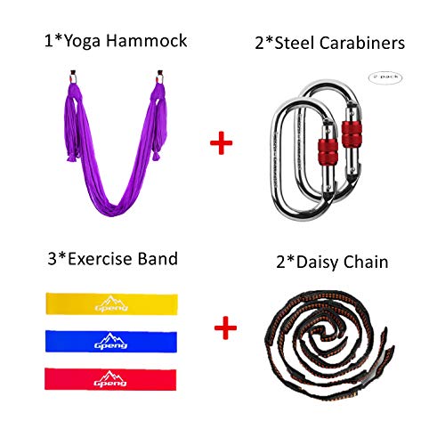 Package Included : 1 x Yoga hammock; 3 x Exercise Band; 2 x Daisy Chain Adjustable Straps; 2 x Carabiners; 1 x Guidebook; 1 x Portable Storage Bag.