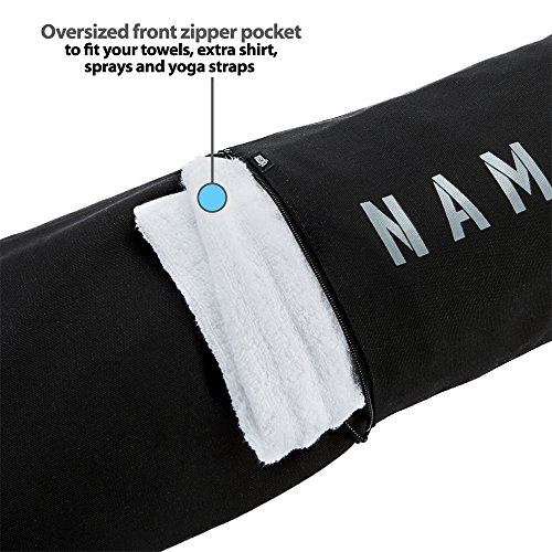 ★ FITS ALL SIZES | XL DIMENSIONS: 28” x 8” With its top loading drawstring feature, our yoga mat bag is built to fit any standard and oversized yoga mats from Manduka, Gaiam, Lululemon and other popular brands. Oversized front pocket to fit your yoga mat spray, towels and extra shirts. Hidden pocket inside to protect your keys, money and other valuable items.