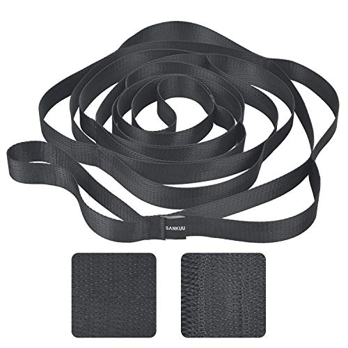 SANKUU black yoga strap is made of premium quality strength woven nylon,durably constructed to withstand extensive use.The strap allows for convenient,targeted stretching of muscles in the core,back,legs(quads, hamstrings, calves),arms,shoulders,and more,whether beginner,intermediate or advanced level.