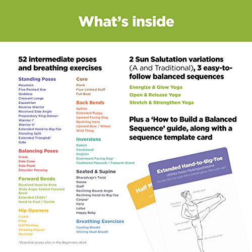 - 50 of yoga’s intermediate poses, grouped by type (5 of them are also present in the original Yoga Cards)