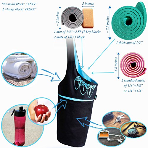 YOGA MATS WON’T FALL OUT: We’ve seen those short yoga bags and carriers too – you know the ones that seem large, but the mat still sticks out, making the tote bag feel uneven. The Zenifit Yoga Tote Bag is 33.5 inches long, and only 25% of the mat sticks out the top! So go ahead, measure your hot yoga mat or Pilates mat now, and if it’s 24 inches wide, then this is the yoga carrier you were looking for today.