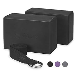 Gaiam Essentials Yoga Block 2-Pack & Yoga Strap Set, Black